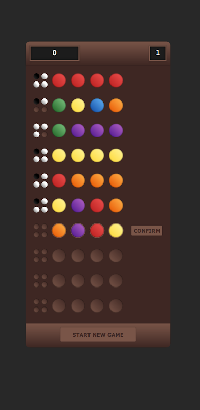 Guess the combination of the hidden colors. Make some attempts and try ..