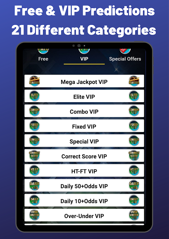 We have 10 Free & 11 VIP sections in our betting app