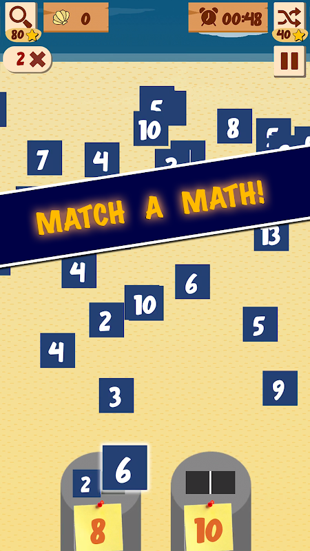In summer beach theme, you will relax playing around with simple items, sometimes they are shapes, sometimes they are daily objects or even numbers to complete your math skill.