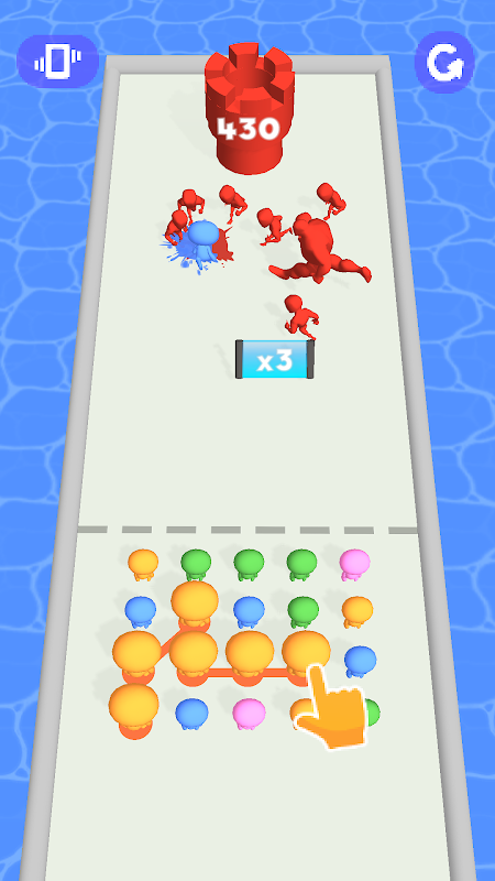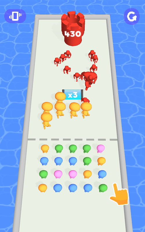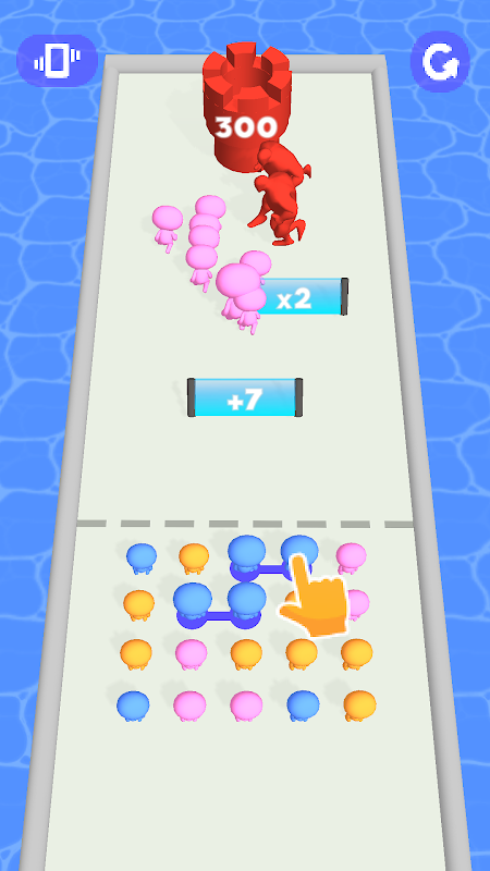 Connect people from the same color and launch them onto multiplier gates