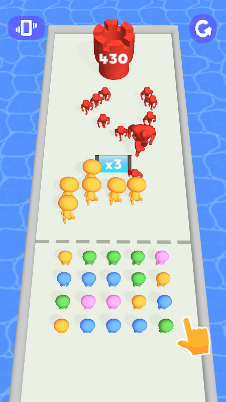 Connect people from the same color and launch them onto multiplier gates to increase your crowd and capture the base!