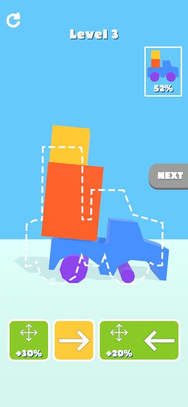 Drag and drop the icons to match the squares to the position and size of the dotted boxes.Careful, don't let the squares fall off!