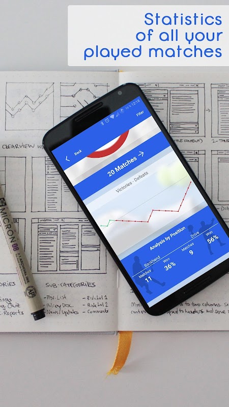 If you like to play padel tournaments you can save notes of each match, if it was indoor padel or open air and save data about your rivals for next matches.