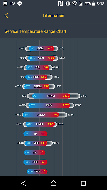 GMORS Material Master give you the materials recommendation for your O-Ring application, based on the working temperature and medium of working environment.