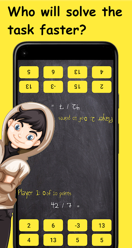 With this game, basic arithmetic (plus, minus, multiply, divide) can be practiced through partner duels. Children improve their arithmetic skills easily and in a fun way.