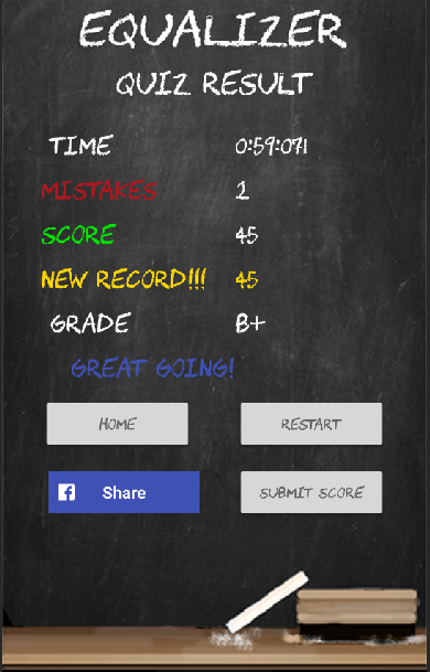 Every mode, you are allowed to submit your score and see your rank compared to other users or you can share your score on Facebook to show off your math skills. You can also see your progress on each mode by checking your grades.