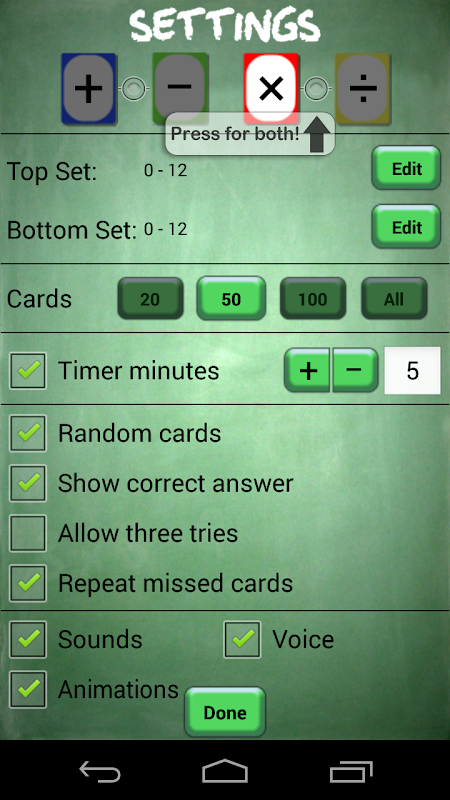 • option to repeated missed cards for review at the end