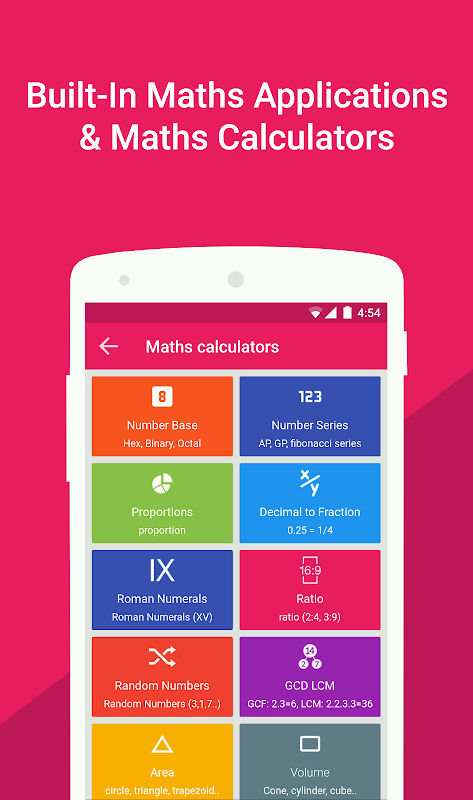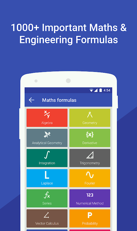 Scientific calculator with math formulas is a best education tool. There are more than 1000 formulas organized neatly. The In-Built calculator has both scientific mode and standard mode. The app also features built in math related Applications and converters.