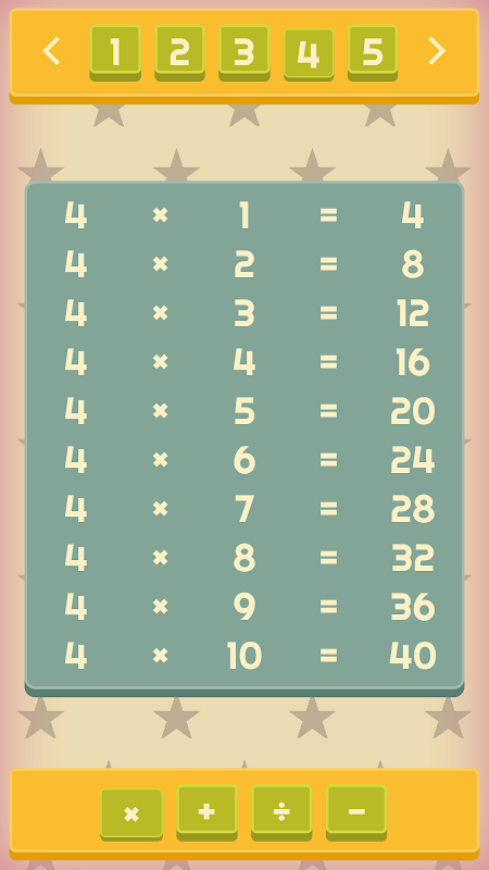 In learn mode you can learn math tables of 1 to 100 number. Learn mode includes all the four arithmetic operators. Select number from top and (plus, minus, multiply or divide) from bottom and you will see the desired table.Get command on simple math operations (plus, minus, multiply and divide).