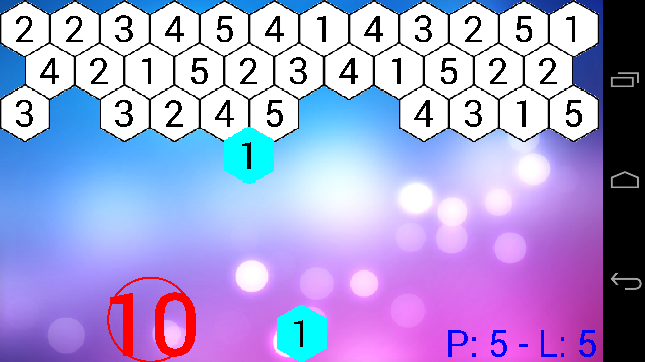 Playing is easy: you simply need to join two or three hexes including the one you launch to obtain the proposed number through their sum. In this way you will remove the hexagons and will pass to the next level once the screen is clean.