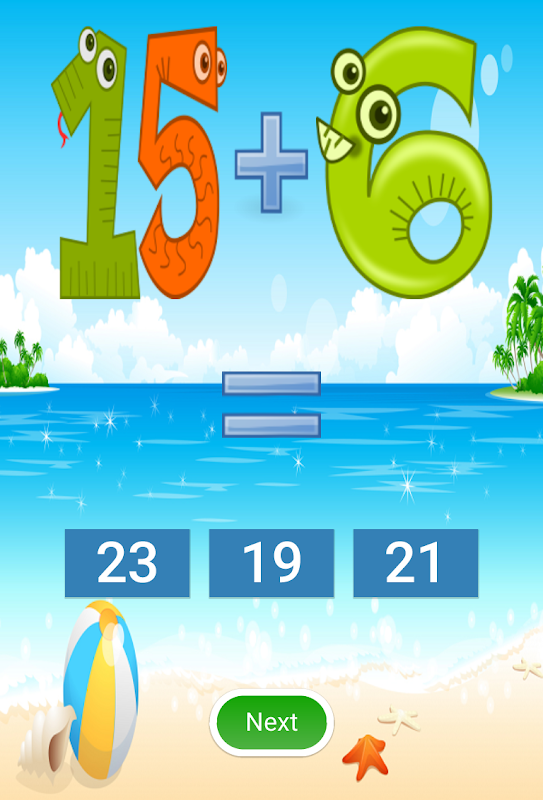 The app contains addition games, subtraction games, multiplication games and division games. In each one of them, the child can make dozens of exercises, in which will be offered different options and the kid only have to click on the option correct and then move to the next exercise.