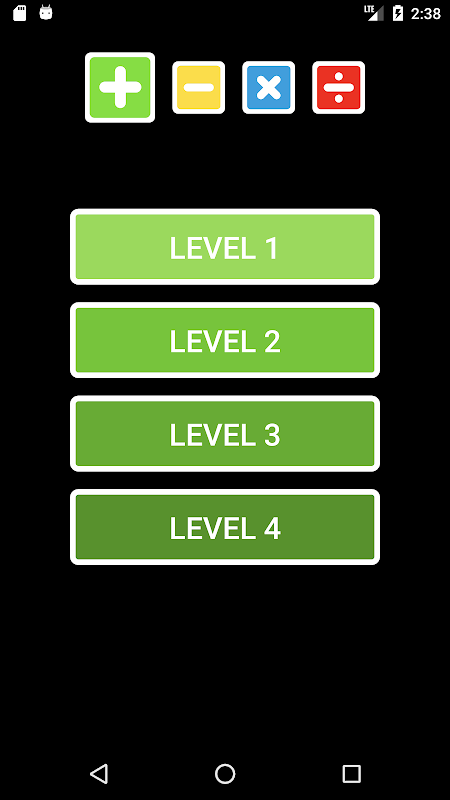- Various difficulty levels for all categories of math games: addition games, subtraction games, multiplication games and division games