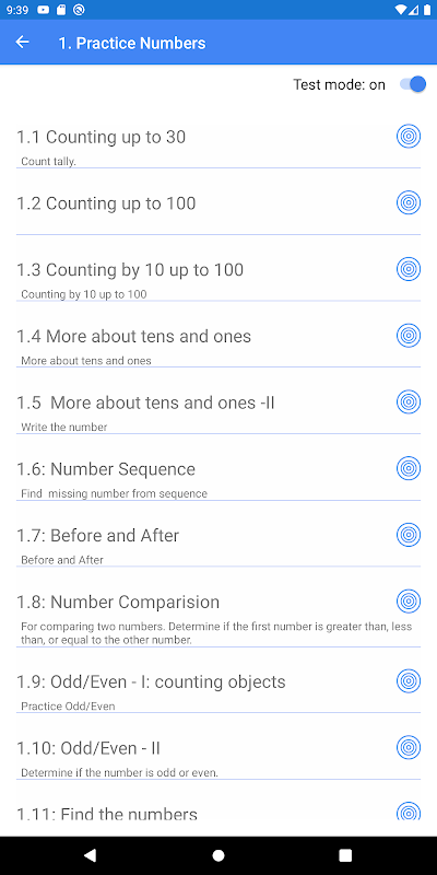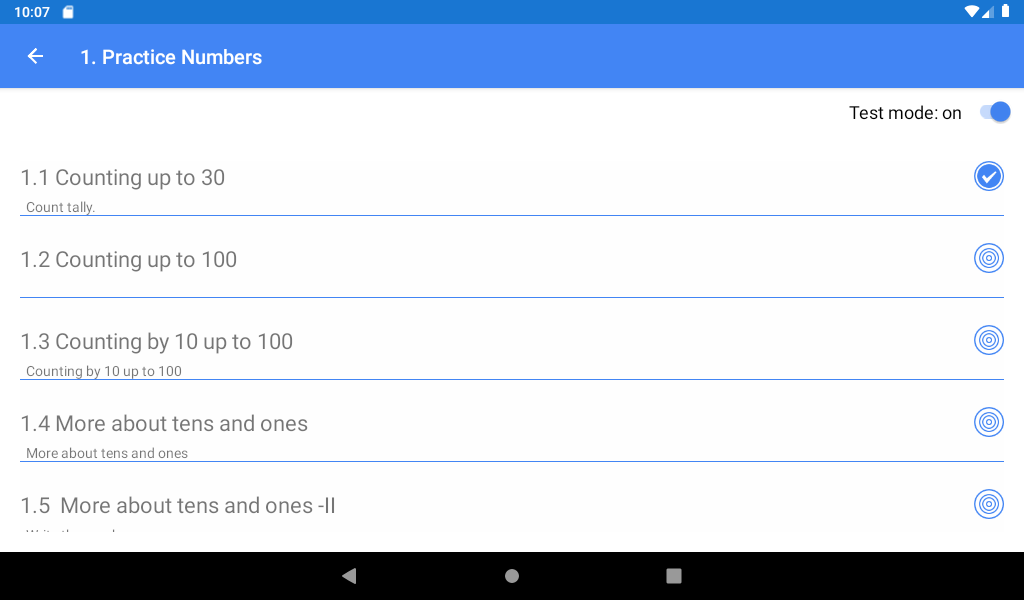 * App Mode: Practice/Test. In practice mode, the student will get the same questions every time unless they change the setting. In test mode, the questions are randomized.