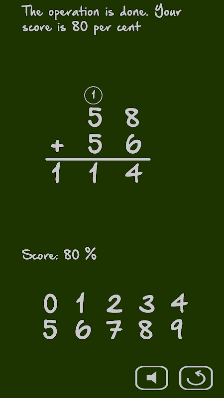 In training mode, you do the long addition step by step by yourself. The application detects the mistakes, such as forgetting the carry. It gives you indications if you need all along math exercises.