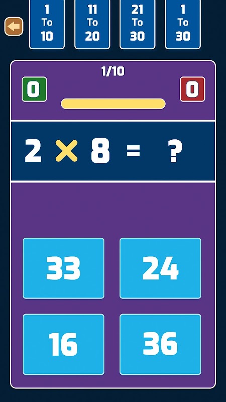 Learn Mode - Learn Multiplication Tables on your own with easy selection options. Whenever you feel confident enough, go to TRY mode and give it a try.