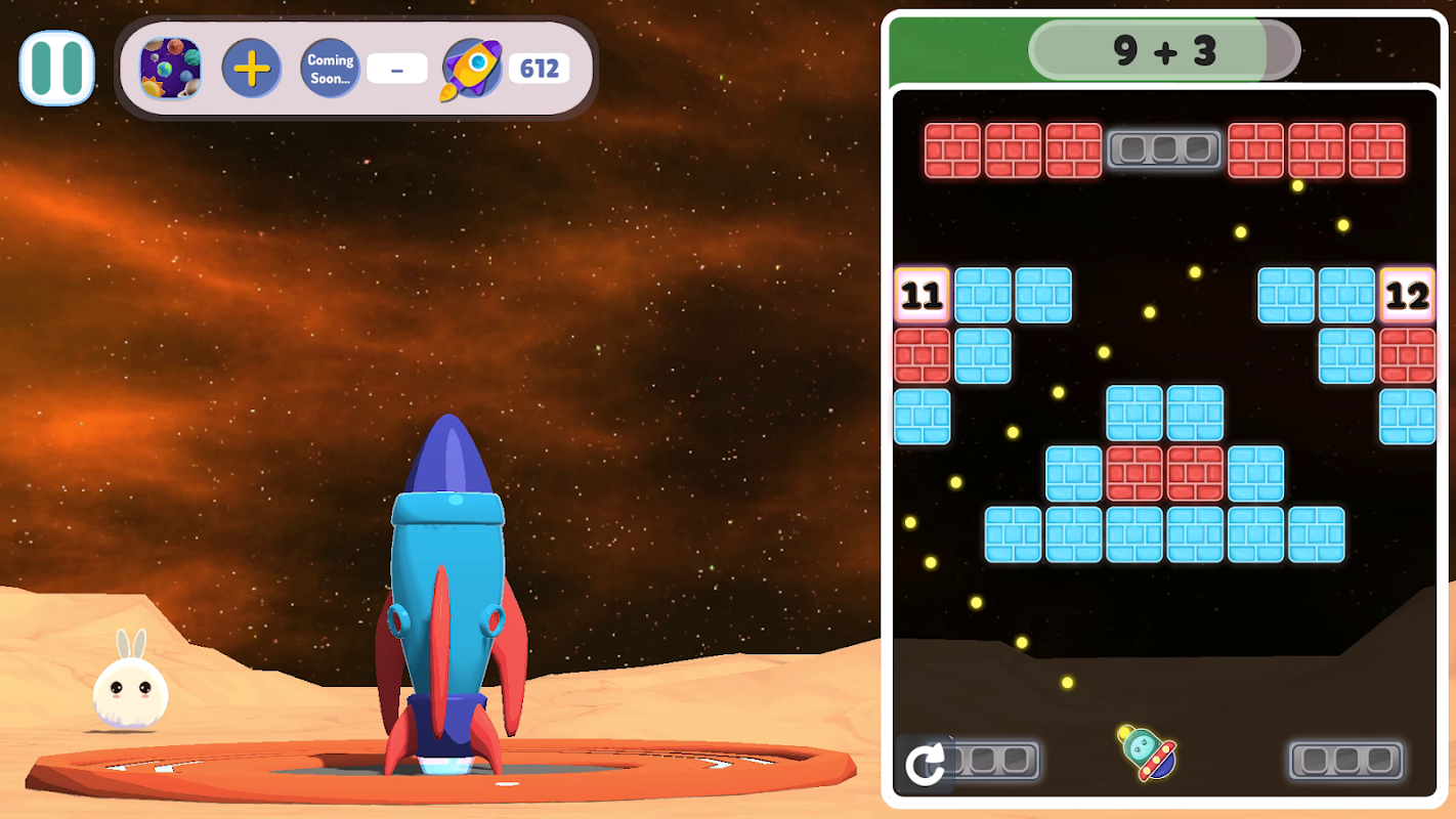 "Math Rocket" is a super fun game that helps you practice your math skills. That is learning addition, subtraction, multiplication and division. The questions start off easy and get harder as you play. But don't worry, we've got your back!