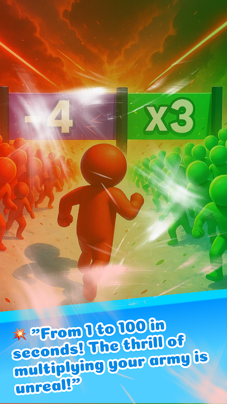 Upgrade Your Army: Collect coins after each run to boost your starting crowd and unlock powerful bonuses.