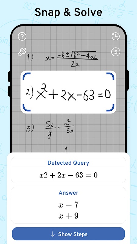 Snap a photo of any math problem, and let our app do the heavy lifting. Effortlessly solve equations with a single click, transforming your device into a powerful math-solving tool.