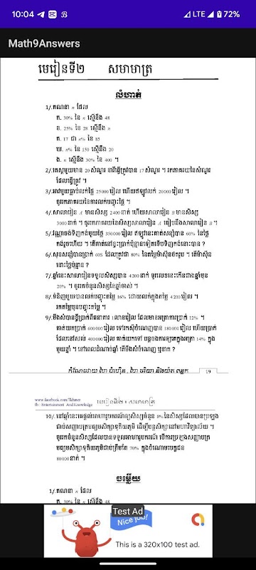 Math9 Answers is a collection of all MOEYS' Mathematics Grade 9 textbooks comes along with the answer sheet of all exercises of the entire book. It is design for 9 graders who need documents to practice exercise and extra consultant. This would help those grade 9 students to use their smartphone more effectively.