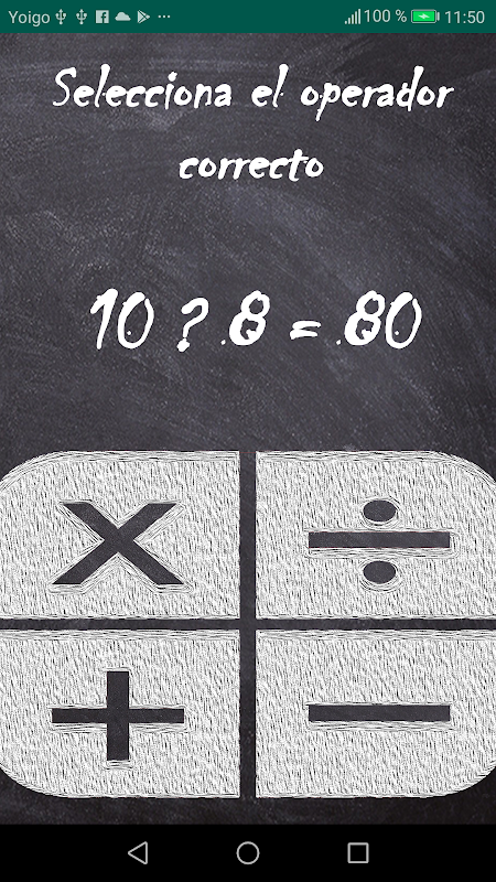 In the Middle level, addition, subtraction, multiplication and division operations are generated with numbers from 1 to 10.