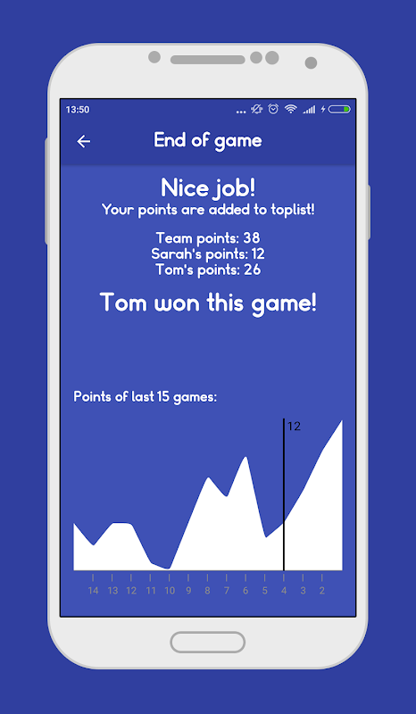 When you reach your record, the application will automatically add your points to the toplist.
