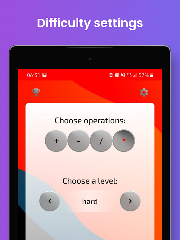 The app has different levels of difficulty so you will instantly level up your knowledge in math. Just pick the time you want to practice math and see your results improving each time!