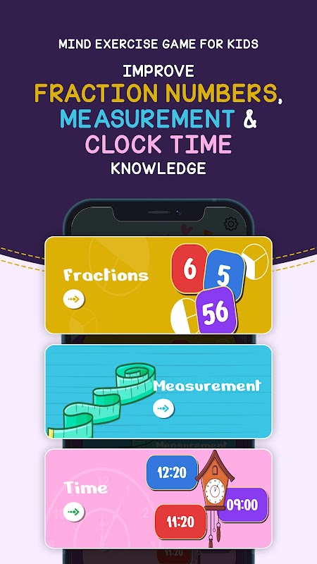 App for kids to improve fraction numbers, measurement and clock time knowledge
