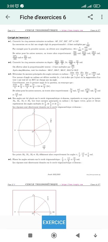 Maths 2nd Exercices corrigés APK Information