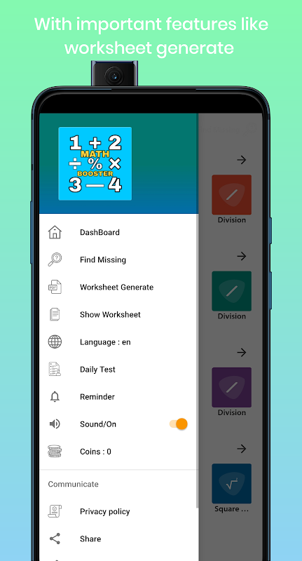 Maths Booster is and android math learning app in which user can do practice of addition, subtraction, divide, multiply and also can play find missing which have 5000 questions set.