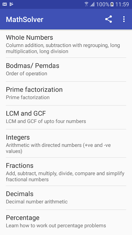 MathStep is a free math app intended to help beginners, who struggle with basic math concepts. This app will show you step-by-step solution to all kinds of problem involving numbers in classroom teaching or everyday life. The app also serves as a math refresher for adults and homework helper for new learners.