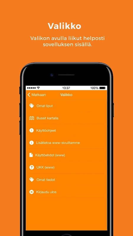 Koivisto Car Start a free application you can find your favorite bus routes and their prices, through Finland! By creating an account, you can buy seasonal, serial, and special tickets to conveniently and environmentally friendly. After the purchase of tickets remain in the application from which it is easy to show to the driver on the bus on take-off. "Buses on the map" - function in addition to tracking where our bus moving at any given time.