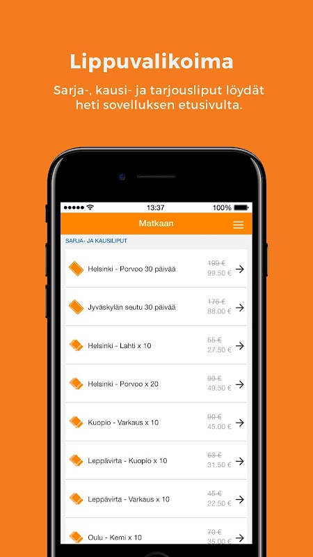 Koivisto Car Start app, you can find a long-distance tickets, through Finland