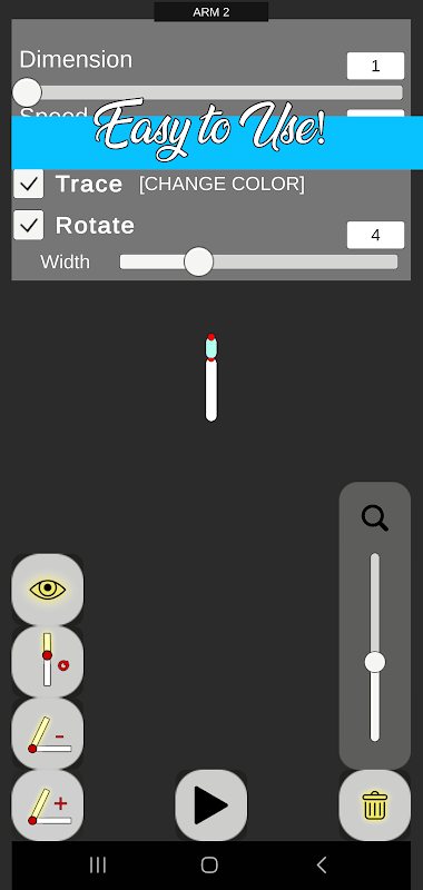 The customization is based on arm's length and rotation speed, giving to the user the oportunity to draw an infinity of diverse patterns!