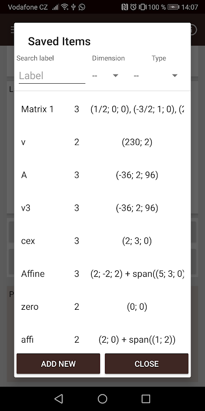 - Saving of Vector, Affine subspaces, Vector subspaces, Matrix
