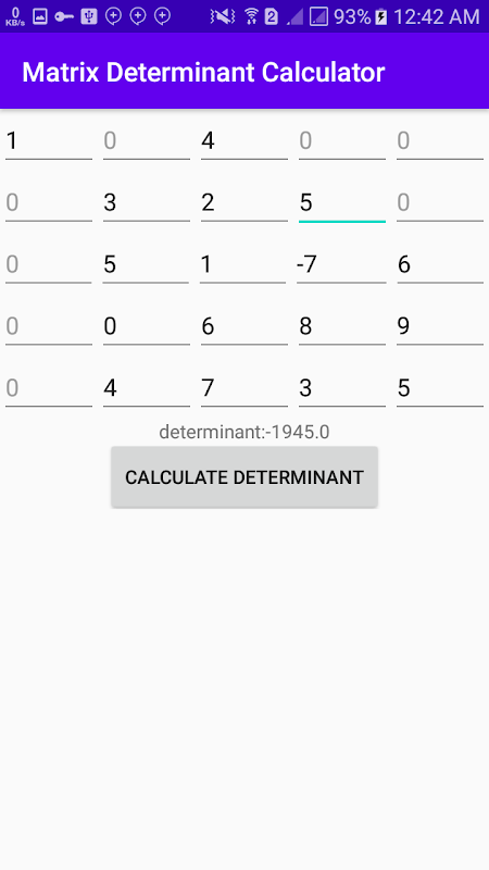 This app will help you calculate the determinant of your matrix of sizes between 2x2 and 10x10 easily!