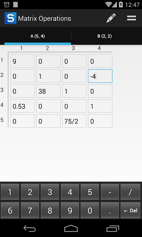 The application lets you to perform some simple operations and calculations with matrices: