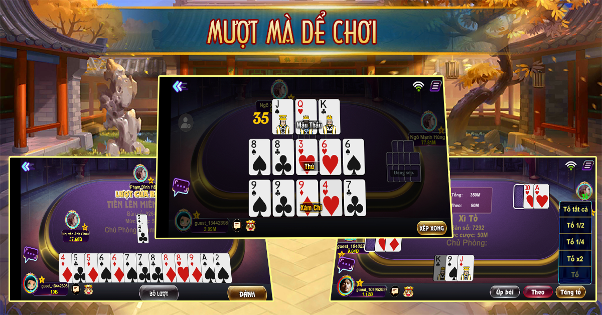 - Many games of Tien Len, Poker (Hong Kong Poker), Phỏm, Tien Len counting cards, scratch cards, Lieng (Scratch To).