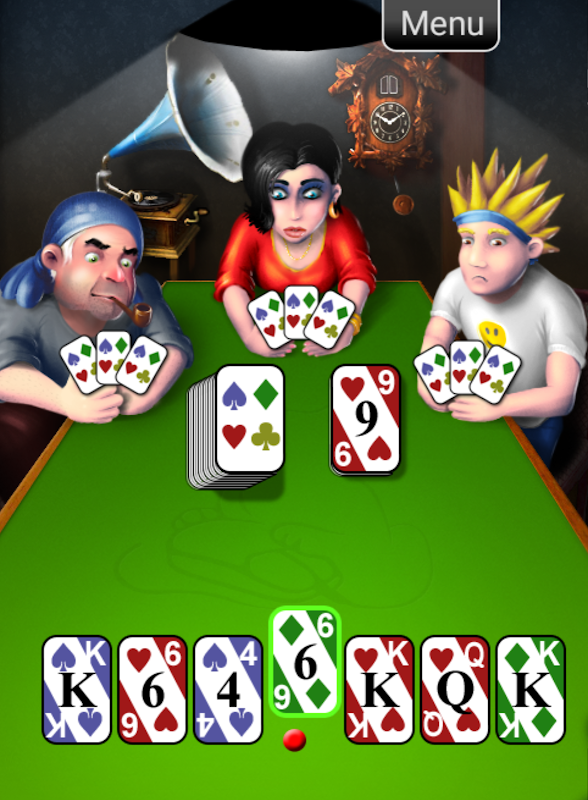 Mau Mau is a classic card game on your mobile phone screen for two to four players. The game is played against three computer opponents, so that a total of four players can participate in the game. The player may choose in the menu a different number of players (two to four) and select which players should be present.