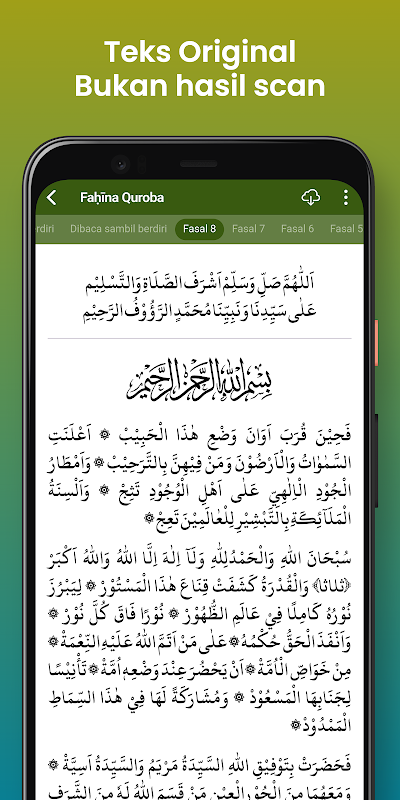 The Arabic writing in this app is not scanned or PDF, but original text typed manually so it is very clear when read.