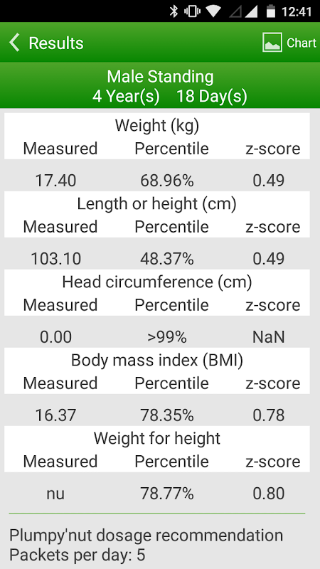 Maventy's malnutrition software based on a child's vital statistics.