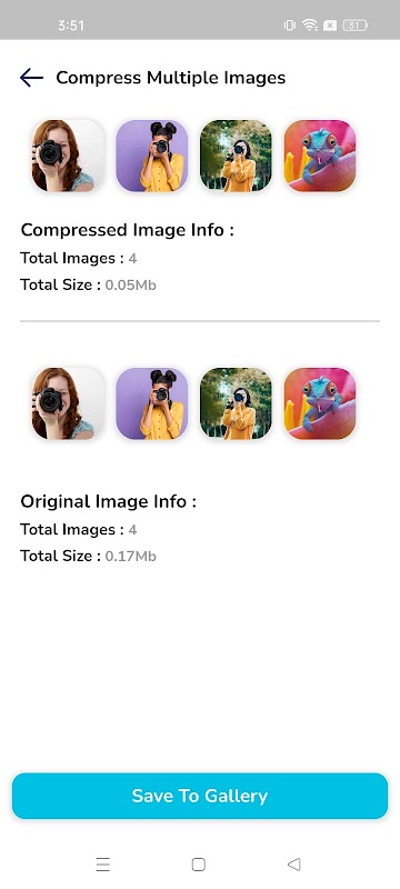 - Maximize Your Storage : Free up precious storage space on your device by reducing image sizes, while keeping your photos looking amazing.