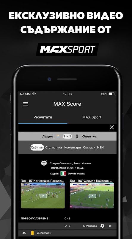 Enter the MAX Score Sports World! Videos, goals, stats, cards, scores and all in real time, because sports is happening now!