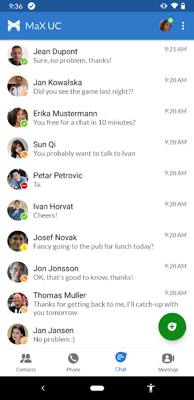 - Realtime presence from your business contacts to help you get in touch at the right time, and custom presence to help others reach you.