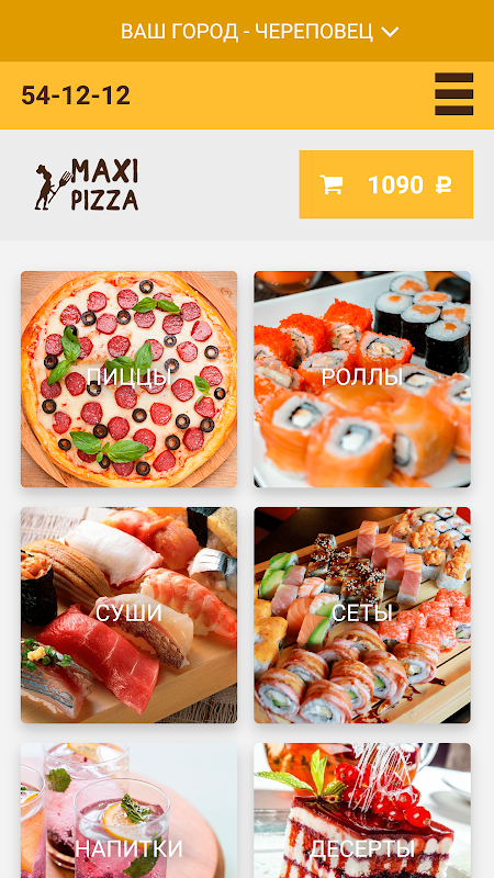 Mobile application for food delivery order from Pizza Maxi Pizza