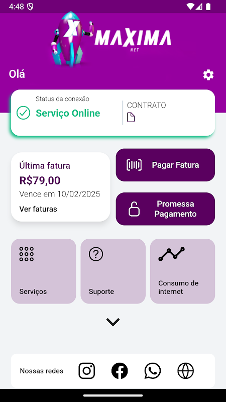 In the Maxima Net Subscriber Center app you can: