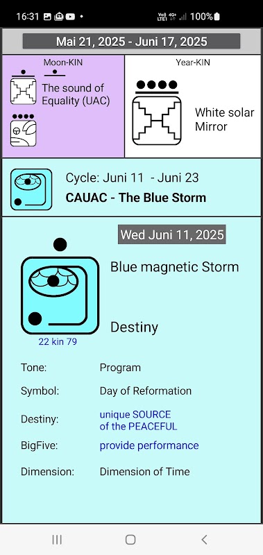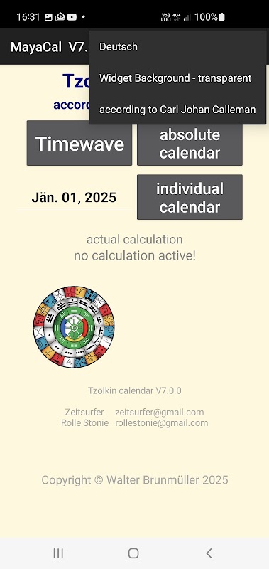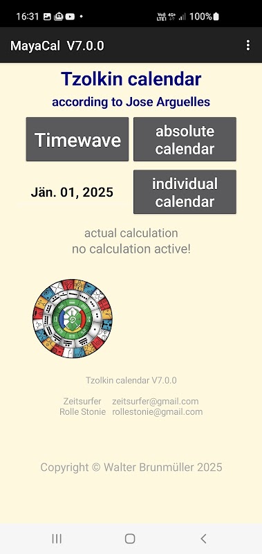 This app offers the possibility of creating an absolute or individual Tzolkin calendar.
