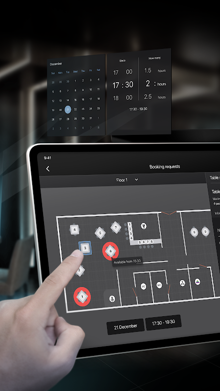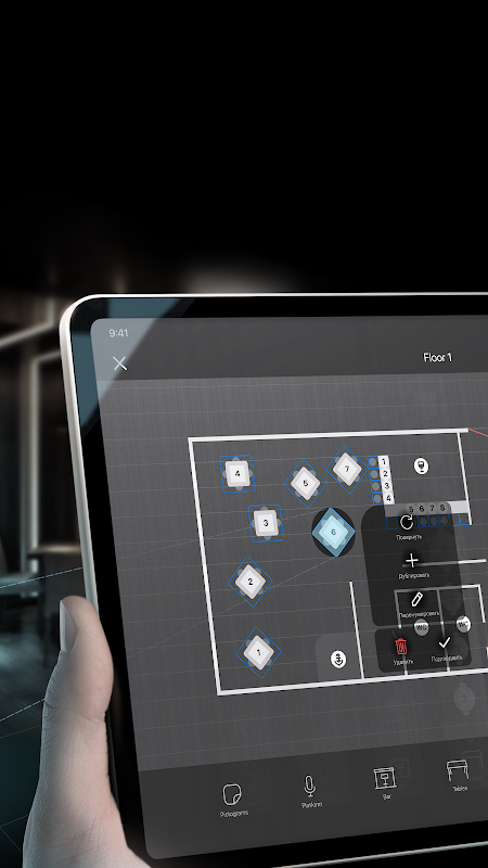 Customize the layout of the hall. In edit mode, you can fully reproduce the arrangement of tables as it looks in reality, taking into account the shape, number of seats and angle of rotation.