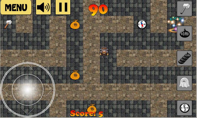 - Bomb: destroys all walls around you
