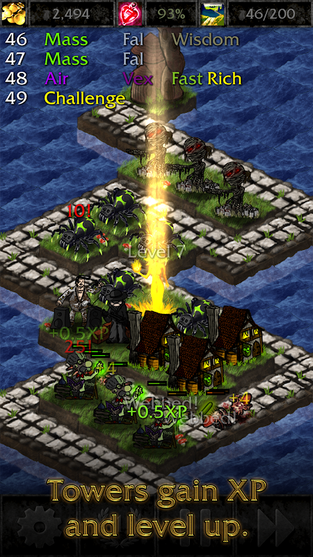 * Towers gain experience, and so do you! The more you play, the stronger your towers become.
