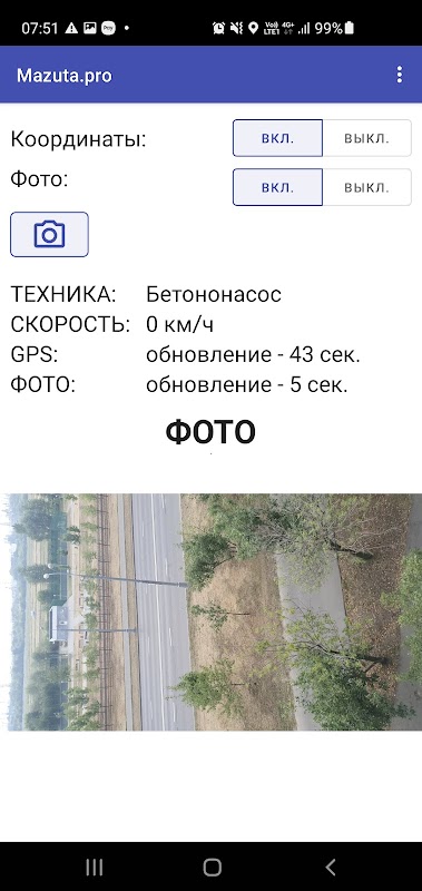 GPS tracker and photo control for www.mazuta.pro service